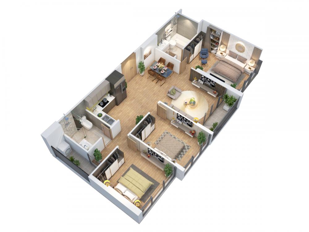 Tất cả các căn 3 phòng ngủ tại dự án 31 Láng Hạ - Sun Grand City Láng Hạ được chủ đầu tư Sun Group thiết kế ưu tiên là các căn góc với 2 mặt thoáng, tầm view trải rộng ra hồ Hoàng Cầu và công viên Indira Gandhi